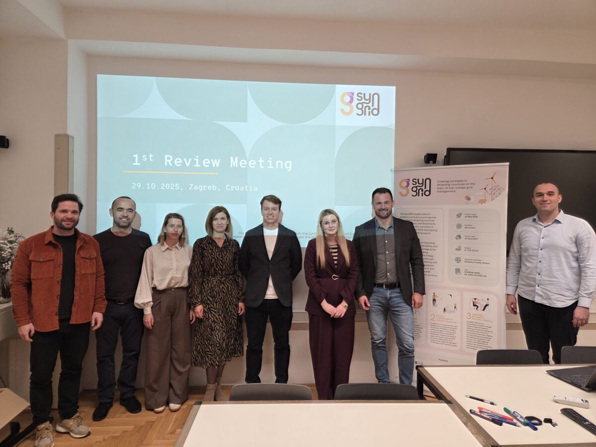 The SynGRID consortium successfully held its First Review Meeting on 29 October 2025 at the Faculty of Electrical Engineering and Computing (FER), University of Zagreb. The hybrid event brought together all project partners on-site in Croatia, while Project Officer Agne Dobranskyte-Niskota from the European Research Executive Agency (REA) and External Reviewer Dr. Peter Dreyer from Denmark, a renowned smart-grid strategy and energy systems expert, joined the meeting online.